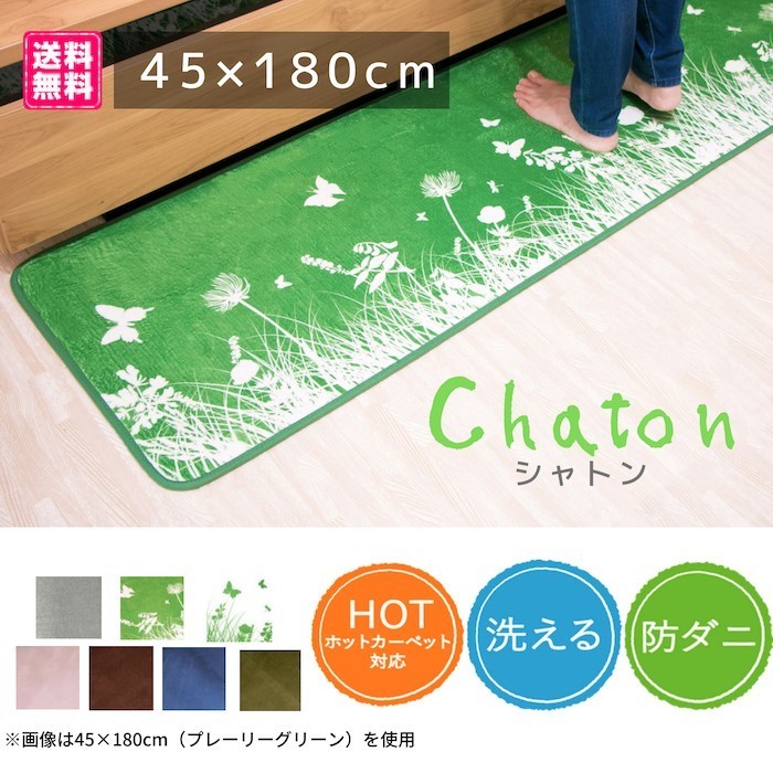 | シャトン キッチンマット 洗える 7カラー 約45×180cm 滑りにくい加工 防ダニ ホットカーペット対応 |