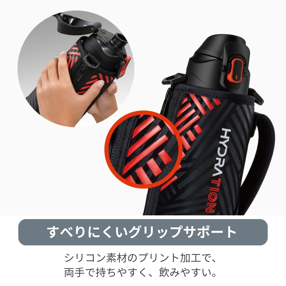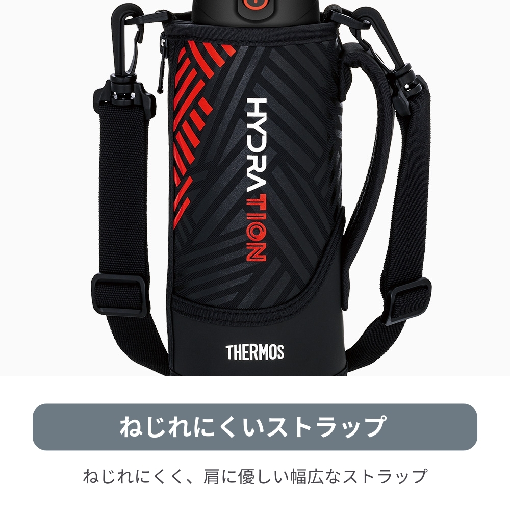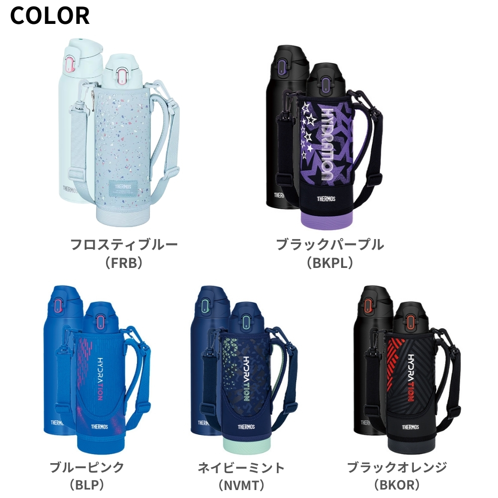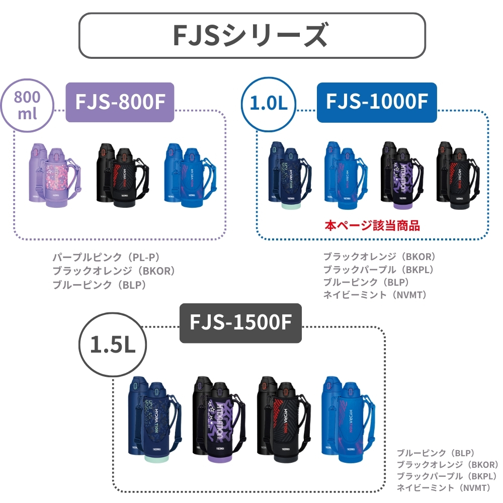 | 商品名:サーモス 真空断熱スポーツボトル FJS-1000F 水筒 1L マグ ステンレス 保冷専用 カバー付き スポーツ飲料対応 ワンタッチ ポーチ ショルダー 子供 大人 キッズ 間口広い スクリュー 学校 スポーツ 直飲み 部活 運動 ジム -商品説明- ポーチにすべりにくい「グリップサポート」を採用!さらに飲みやすくなりました。 人気のスポーツボトルがリニューアル。両手で握ったときにすべりにくい加工を施したポーチや、大きく開いて飲みやすいキャップユニットなど使いやすさにこだわりました。 すべりにくいグリップサポート シリコン素材のプリント加工で、両手で持ちやすく、飲みやすい。 飲みやすい飲み口・フタ構造 フタが大きく開き、飲みものの流れを良くする空気穴で、飲み口をくわえても一気に飲める。 軸が下がってさらに飲みやすい(※当社比) ワンタッチ・オープン ワンタッチで簡単オープン。 ツートンカラーのロックリングでロックされているのがわかりやすい。 ハンディポーチ 高いホールド性のハンドル。 丈夫なソコ ポーチソコに摩擦に強い素材を採用。 ねじれにくく、肩に優しい幅広なストラップ 氷が入るワイドな口径 スポーツ飲料OK! -特徴・品質- ・真空断熱技術で高い保冷効力を実現 -仕様- ・カラー: ブラックオレンジ(BKOR)、ブラックパープル(BKPL)、ブルーピンク(BLP)、ネイビーミント(NVMT) ・実容量(L):1.0 ・保冷効力(6時間):9℃以下 ・口径(約cm):4.5 ・本体寸法/幅×奥行×高さ(約cm):8.0×8.5×27.5 ・本体重量(約kg):0.5 保冷効力とは、室温20℃±2℃において製品に4℃以下の水をキャップユニット下端まで満たし、水温が4℃±1℃のときからキャップユニットを付けて縦置きした状態で6時間放置した場合におけるその水の温度です。 実容量とは、キャップユニット下端までの容量です。ご使用の際は、取扱説明書をご確認いただき適正な量を入れてください。 本体寸法(ポーチを含まず)は0.5cm単位、本体重量(ポーチを含む)は0.1kg単位で表示しています。 -機能- ・ワンタッチオープン、グリップサポート、広口設計、スポーツ飲料対応 -使用・手入れについて- 使用前後の清掃を推奨し、直接の日光や高温を避けた場所で保管してください。 ストラップは洗濯可能ですが、ボトル本体は手洗いを推奨します。 -注意事項- ・商品の色はできる限り実物に近づけていますが、ディスプレイ設定や撮影条件により色味が異なる場合があります。ご了承ください。 ・ご注文のタイミングや内容により、購入後のキャンセルや修正が制限される場合があります。 ・同時に複数のご注文があった場合、システム上の遅延により在庫がないにも関わらず購入できてしまう場合があります。そのような場合は速やかにメールでお知らせいたします。 |