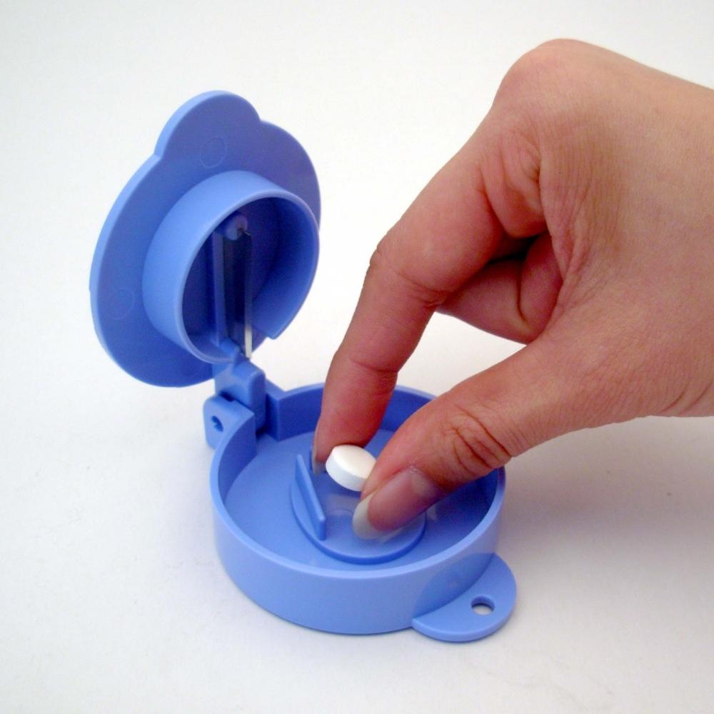 錠剤をはさんで押さえるだけで、飛び散る心配がありません。