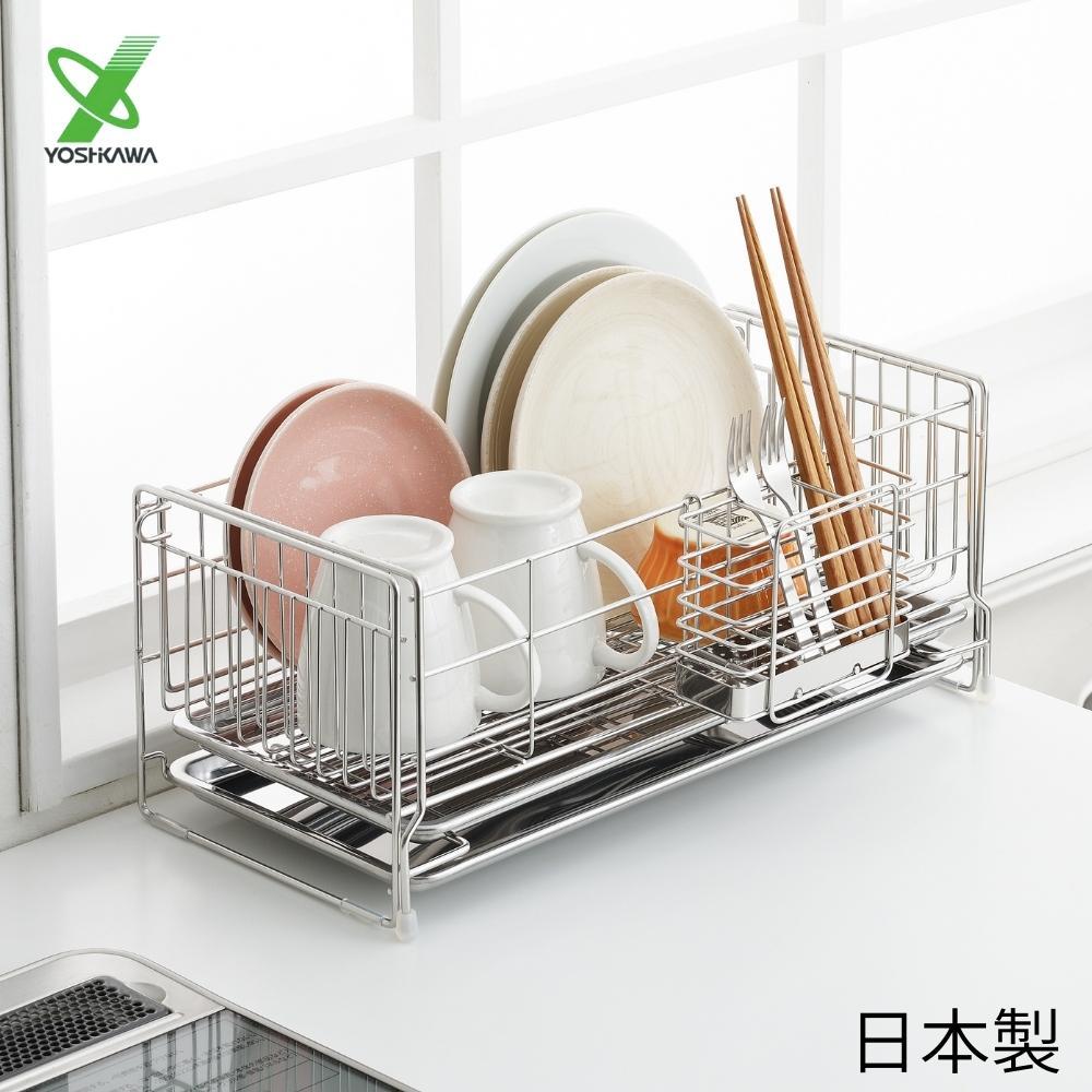 ヨシカワ 水切りラック 燕三条 1306034 水切りカゴ シンク スリム ステンレス 924955 伸縮 水切り ラック 食器置き スタイリッシュ トレー スライド カトラリー 大容量
