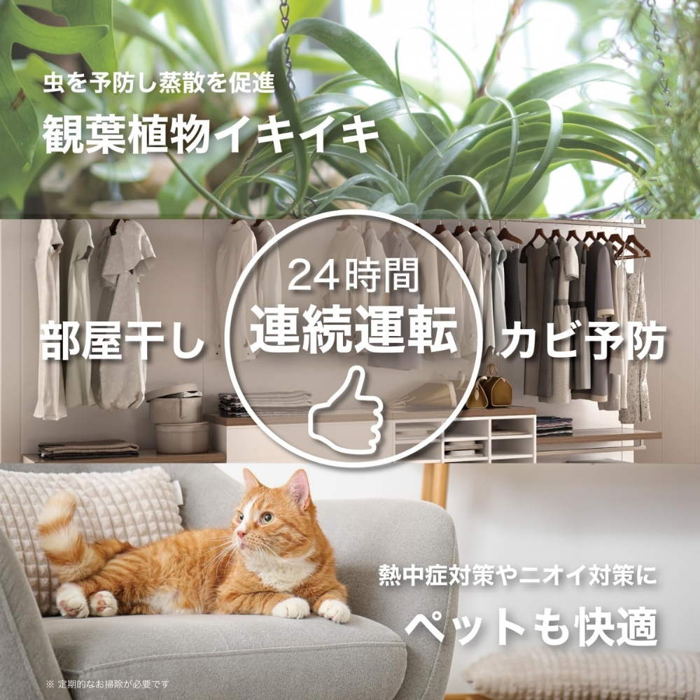 ・室内干しの乾燥促進や押入れ・玄関のカビ対策にも便利。