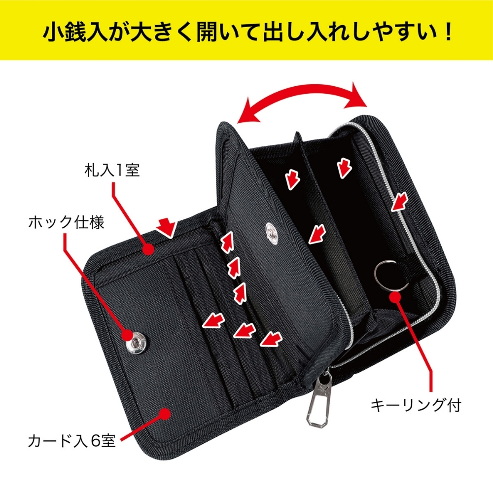 | 商品名: クツワ プーマ 2つ折りホックウォレット PM510 メール便対応 財布 二つ折 小学生 中学生 男の子 薄い カードがたくさん入る 小銭入れ ストラップ付 -商品説明- 2つ折りホックウォレット PM510BK/PM510NB ・札入、カード入部分は、ホック仕様で開けやすく、 小銭入は大きく開いて使いやすい ・札入1室、小銭入2室、カード入8室(6室+2室)、内側にキーリング付 ・長さを調節できるストラップ付で持ち方が選べる 約50cm~1mに調節可能 ・本体生地にはマット調の合皮生地を使用 ・オリジナルデザインのメタルパーツ付ワッペン、引き手付 -特徴・品質- ・マット調の合皮(PU)素材を採用し、高級感と耐久性を兼ね備えています。 ・内側にキーリング付きで鍵も収納可能。 ・オリジナルデザインのメタルパーツと引き手でおしゃれな仕上がり。 -仕様- ・サイズ:H95×W125×D25mm ・重量:112g ・素材:合成皮革(PU)、ポリエステル ・カラー:ブラック、ネイビー ・札入1室、小銭入2室、カード入8室(6室+2室) ・長さ調節可能なストラップ付き(約50cm~1m) -機能- ・ホック仕様で簡単に開閉可能。 ・カード収納が豊富で整理が簡単。 ・ストラップの長さ調整が可能で、用途に合わせて使い分け可能。 -使用・手入れについて- ・汚れた場合は柔らかい布で拭いてください。 ・高温多湿の場所での保管は避けてください。 ・小さな部品が含まれるため、小さいお子様の手の届かない場所で保管してください。 -注意事項- ・商品の色はできる限り実物に近づけていますが、ディスプレイ設定や撮影条件により色味が異なる場合があります。ご了承ください。 ・ご注文のタイミングや内容により、購入後のキャンセルや修正が制限される場合があります。 ・同時に複数のご注文があった場合、システム上の遅延により在庫がないにも関わらず購入できてしまう場合があります。そのような場合は速やかにメールでお知らせいたします。 |