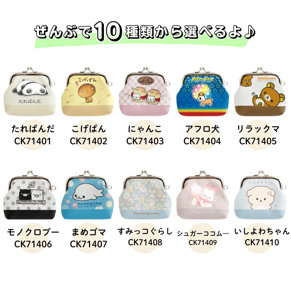 商品名: サンエックス キャラミックス がま口コインケース 合皮 約90×100×30mm CK71401〜CK71410 サンエックス キャラミックス がま口コインケース メール便対応 コインケース 小銭入れ がま口ポーチ 小物入れ 収納 プレゼント