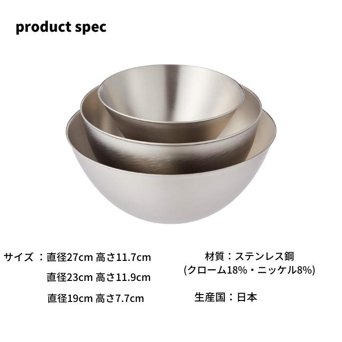 ・セット内容:ステンレスボール19cm、23cm、27cmの3点セット