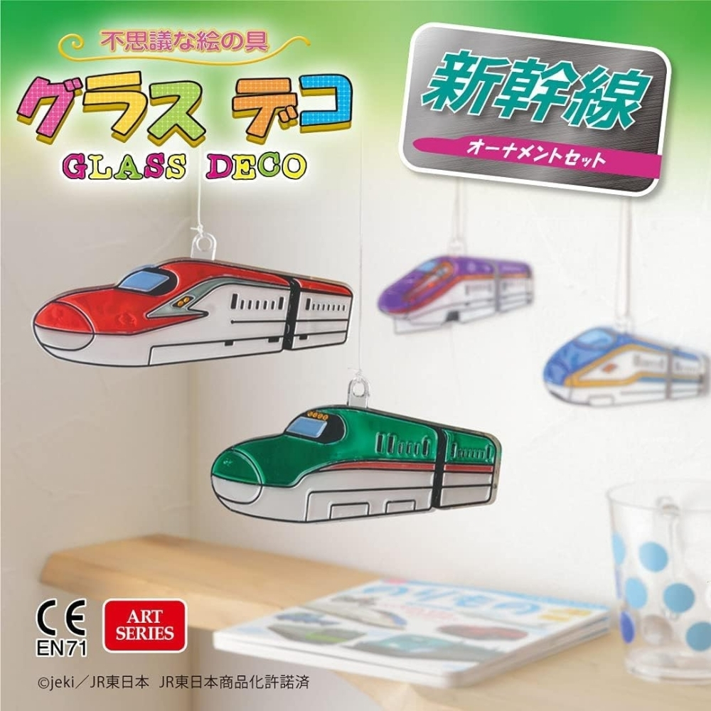 このDIYセットは、JR東日本の人気新幹線車両をモチーフにしたオーナメント4種類と、使いやすいペン型グラスデコ6色を提供します。