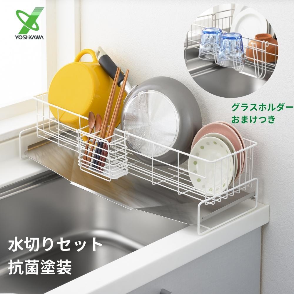 ヨシカワ 日本製 抗菌 燕三条 水切りカゴ グラスホルダー セット 1306161 1306171 ステンレス シンクサイド 水切り スマート シンプル おしゃれ