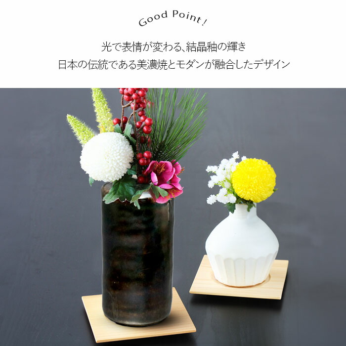 ・【結晶釉の輝き】日本の伝統である美濃焼とモダンが融合したデザイン。黒結晶ならではの深みのある黒釉に結晶のような独特の揺らぎが現れた、味わい深い美濃焼の一輪挿しです。