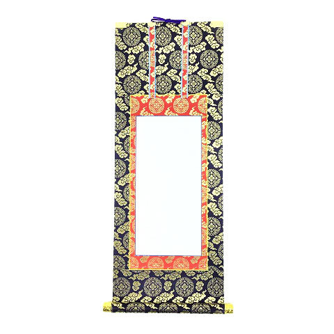 ◆生地:金襴紺東紋(八ツ藤)表装・彫金具付