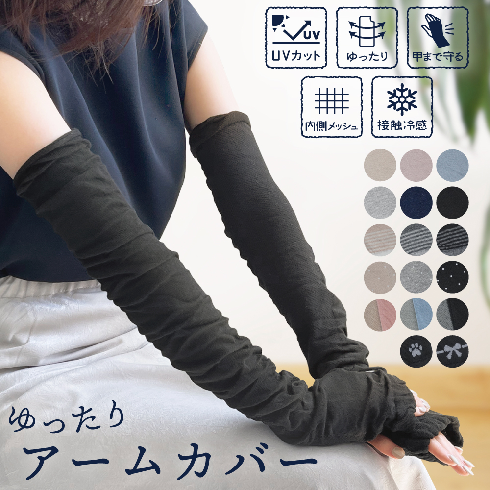 アームカバー ゆったり 綿混 UVカット ロング 内側メッシュ 接触冷感加工 手の甲まで きちんとガード 60cm 二の腕 肩まで 日焼け対策 日焼け予防 UV 人気