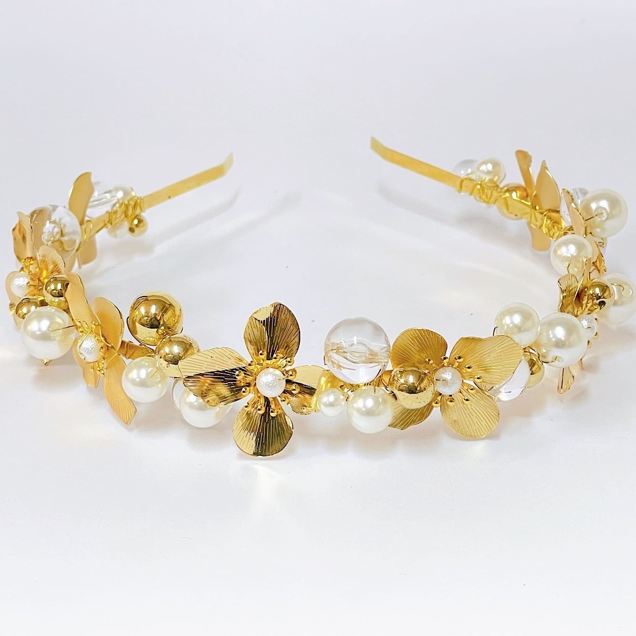 パールとお花の可愛いカチューシャとなります。