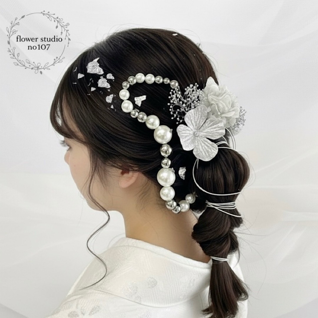成人式 髪飾り シルバーパールミックス ランダムボールチェーン 水引き 金箔シート 髪飾り 成人式髪飾り 卒業式