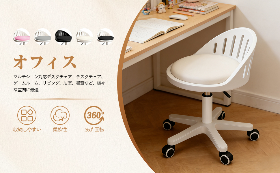 【多彩カラー選択可・多シーン対応】このオフィスチェアは清新で柔らかいカラーを複数ご用意し、シンプルで可愛いデザインは様々なシーンにぴったり調和し、様々な場面での使用ニーズを全方位的に満たします。