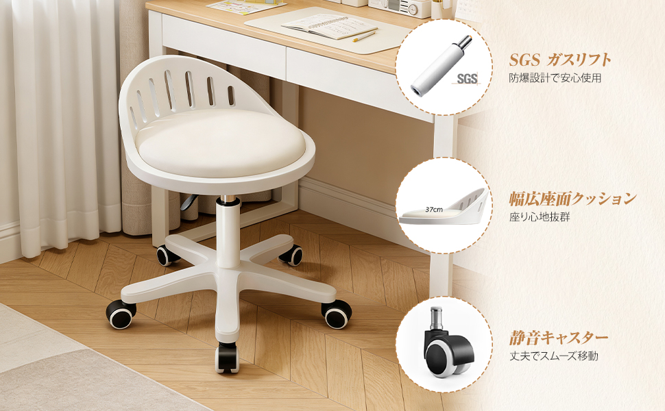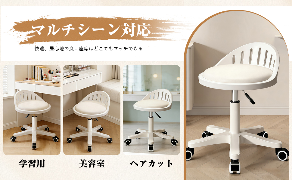 【快適でスタイリッシュ】高品質な PU レザーと高密度スポンジを採用したこのローリングスツールは座り心地が快適で、洗練されたプロフェッショナルなデザインはどんな空間にもモダンな雰囲気を与え、全体的な質感を高めます。