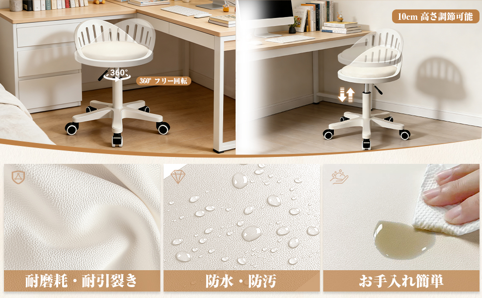 爆買 デスクチェア オフィスチェア パソコンチェア 椅子 PUレザー 高さ調節可能 360度回転 静音キャスター 学習椅子 仕事 在宅勤務 診察 美容室