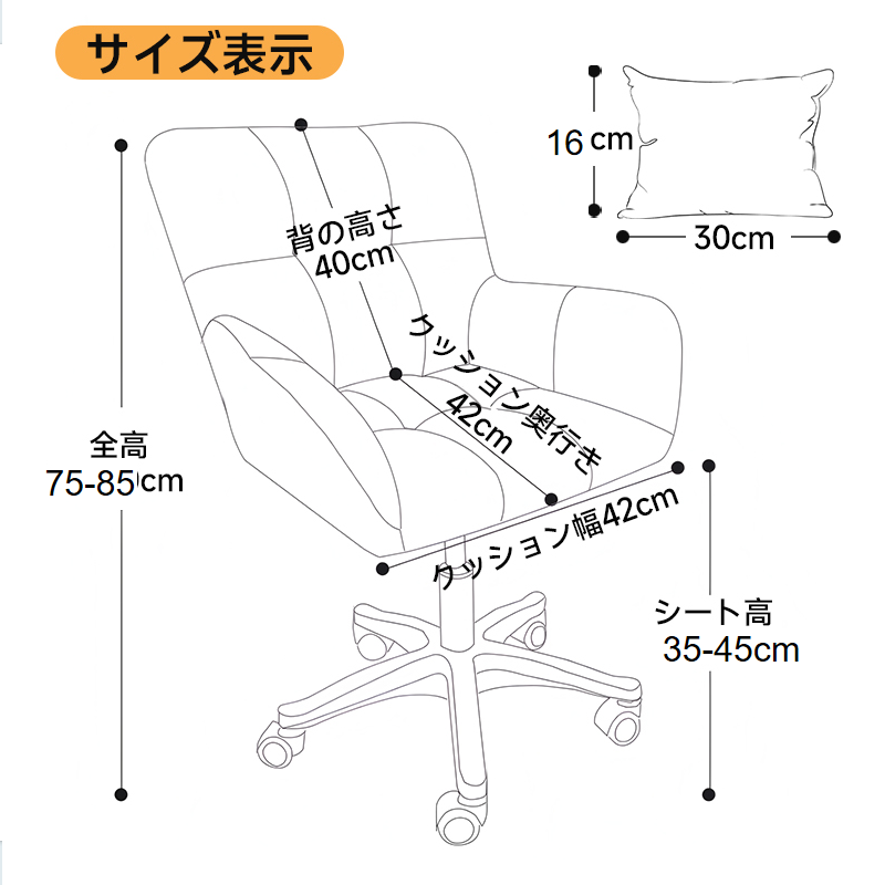 ・椅子サイズ:W42×D42×H75〜85cm(座面高さ:35〜45cm)