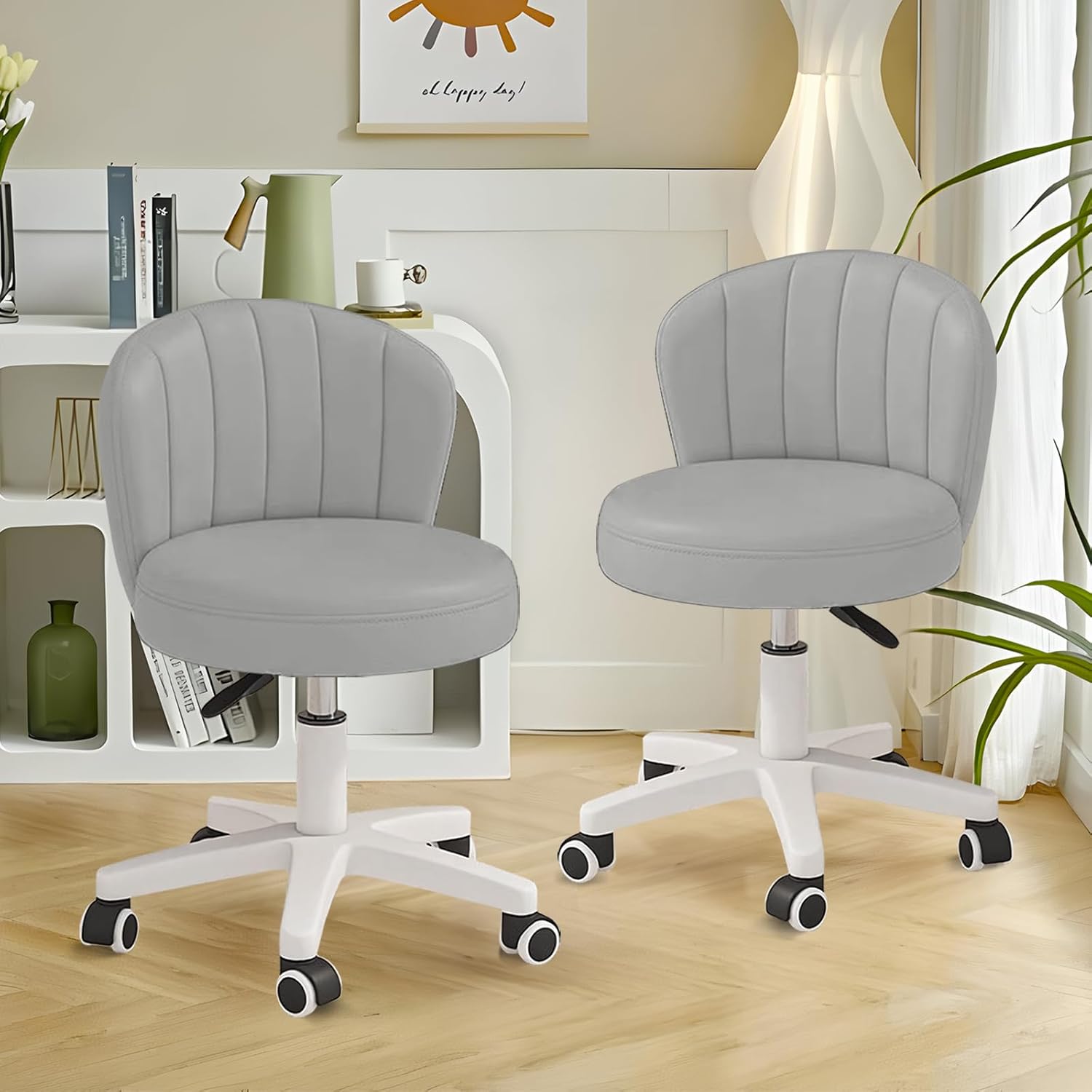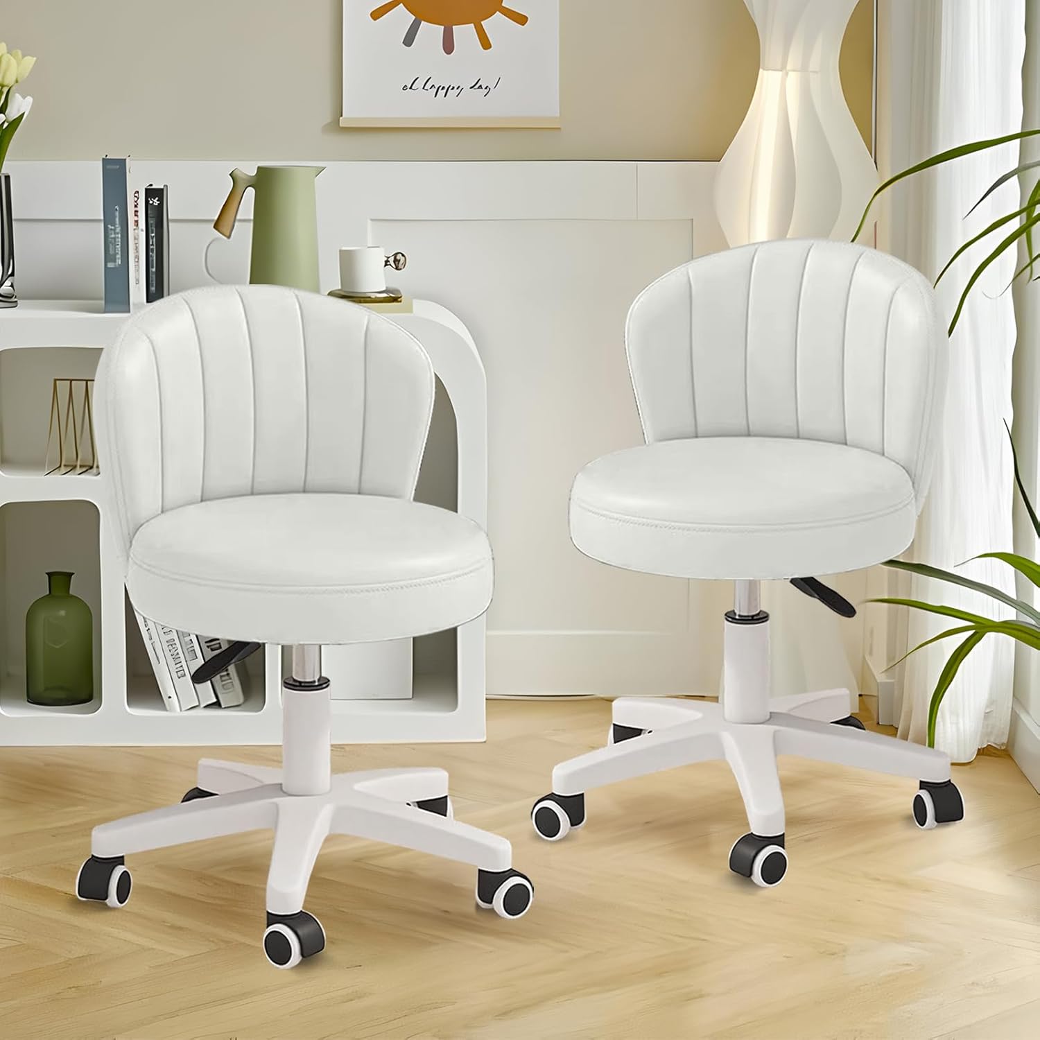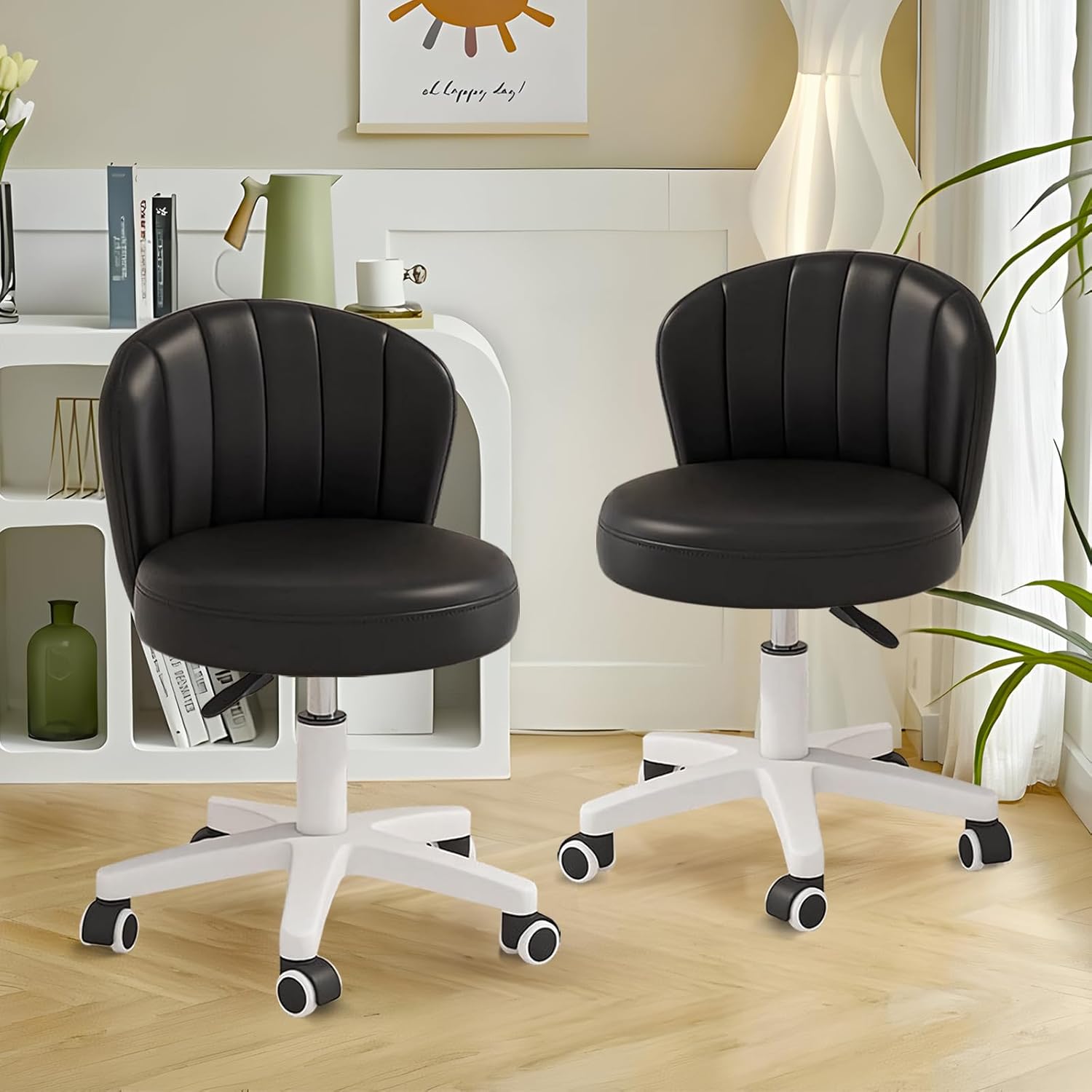 オフィスチェア 背もたれ スツール PUレザー 1脚/2脚セット 高さ調節可能 360°回転椅子 静音キャスター 在宅勤務 仕事 診察 美容室 35*35*70cm