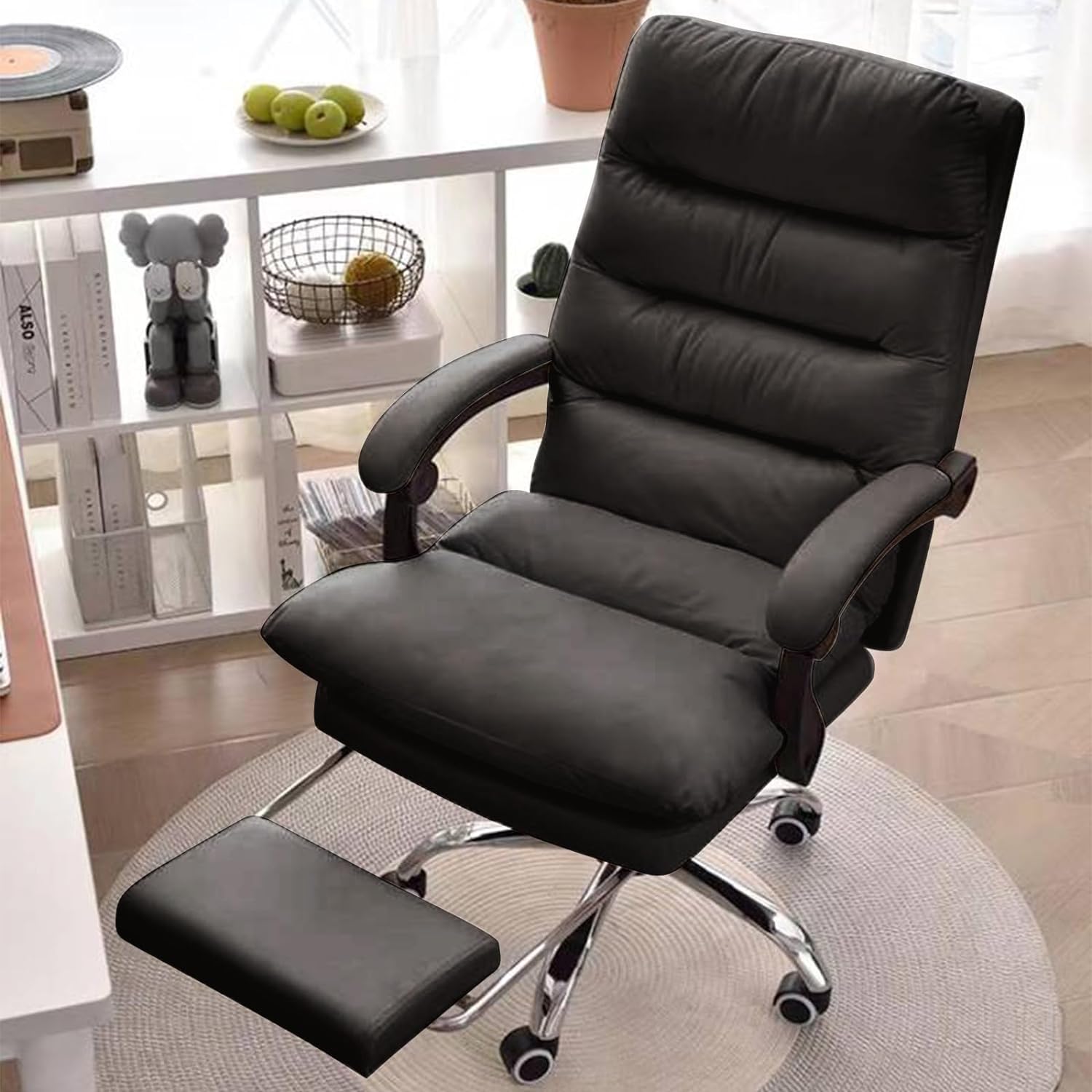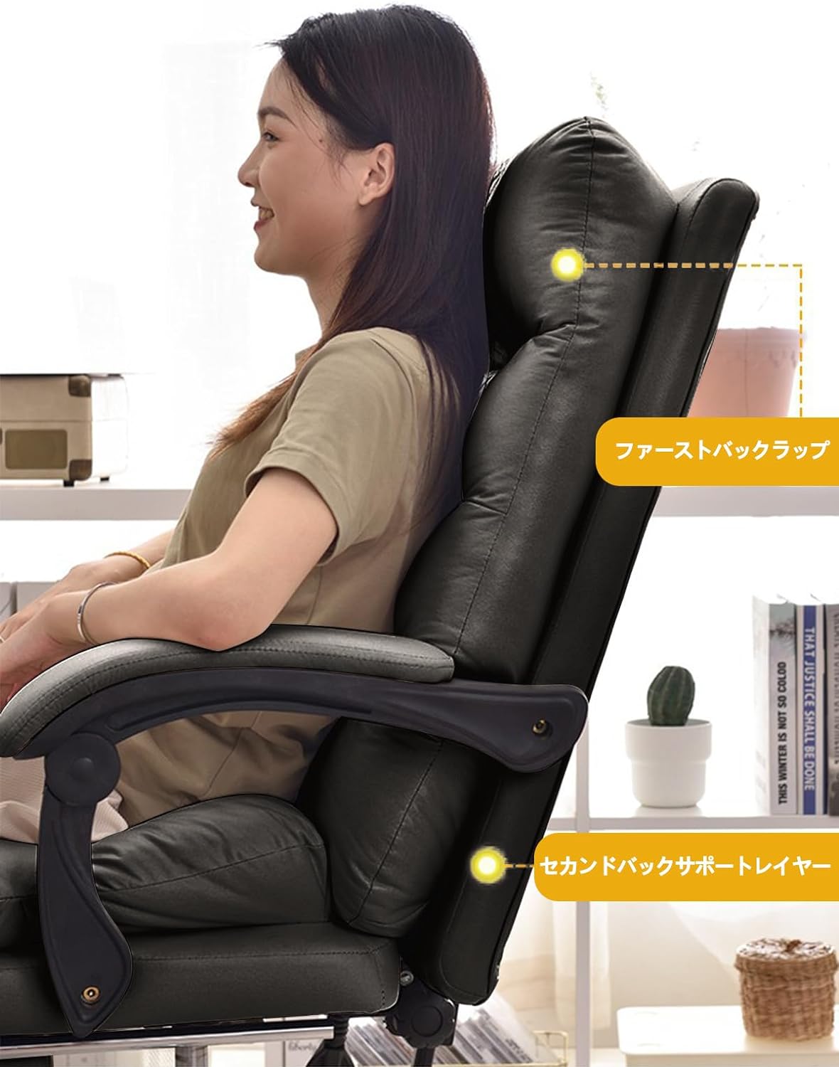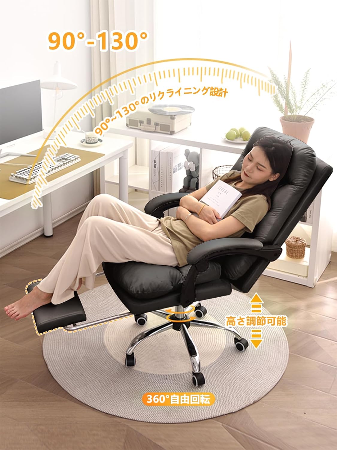 オフィスチェア 社長椅子 リクライニング ハイバック ブラック 人間工学 回転可能 在宅勤務 PUレザー 通気性 静音キャスター 座面昇降機能