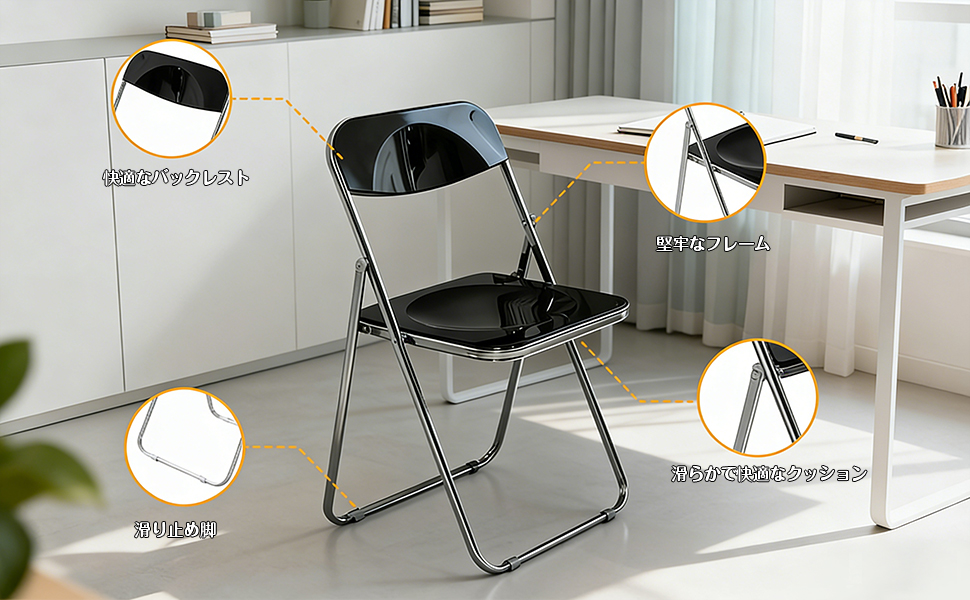 【お手入れ簡単】折りたたみチェアのメンテナンスは非常に簡単です。日常的な汚れやホコリは、水または中性洗剤で軽く拭くだけで、すぐにきれいになります。また、頑丈なスチールフレームを採用し、表面には滑らかな鏡面クロムメッキ加工を施しているため、錆の発生を根本的に防ぎ、耐久性も十分に備えています。