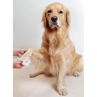 ウェットティッシュのようにシートに液体を染み込ませてあるので、シートを取り出してワンちゃんの足の裏を拭いてあげるだけ!