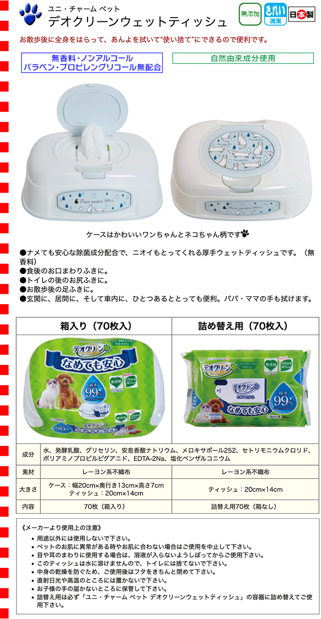 ユニ・チャーム ペット デオクリーン 純水99% ウェットティッシュ(62524)