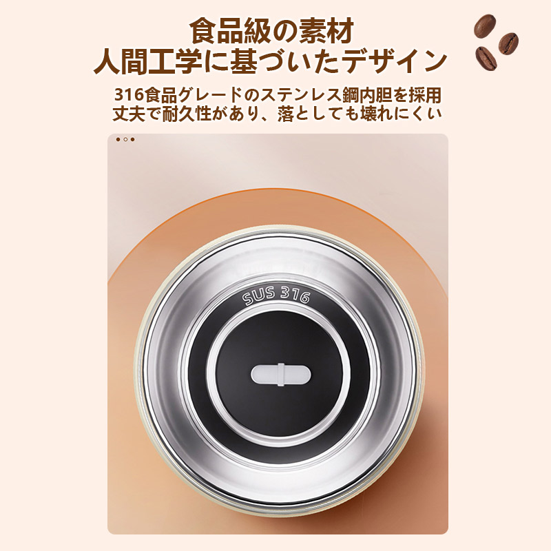 【食品グレード素材】316食品グレードステンレス内胆を採用、優れた塩化物耐性を持っています。磁力ローターは、耐酸・耐アルカリ性、耐高温・低温性に優れたPTFE(テフロン)素材で、お客様の健康と安全を守ります。