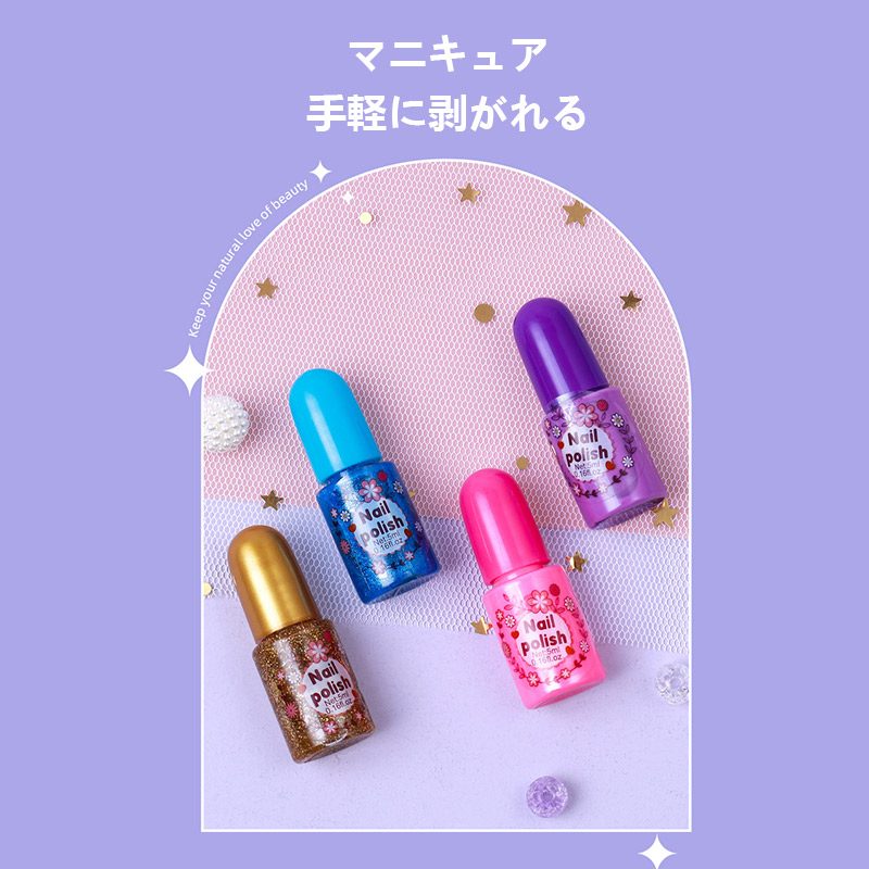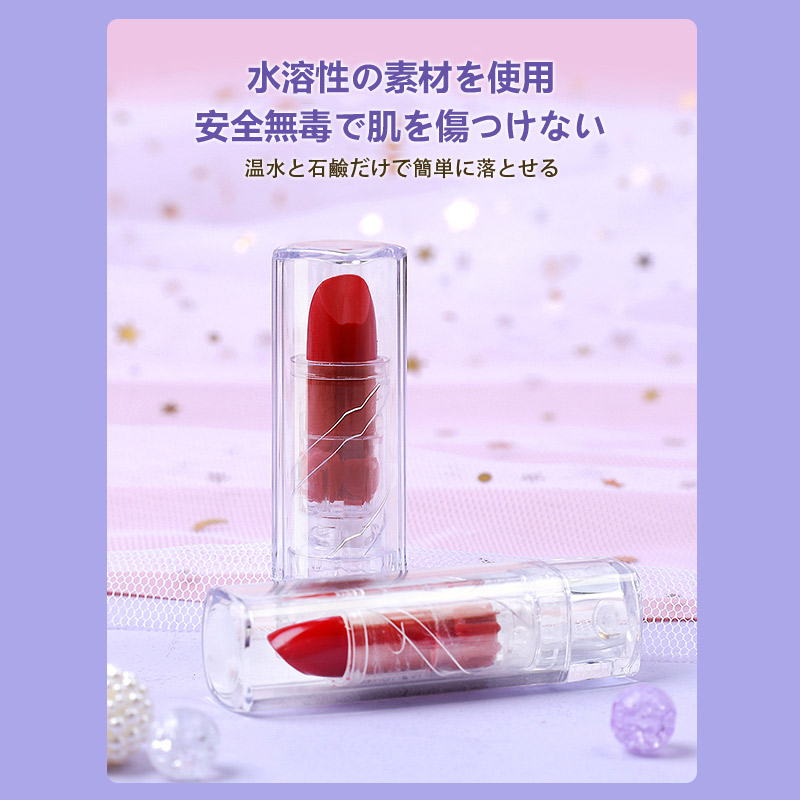簡単にお湯で落とせる水溶性素材を使用しているので、初めてのお化粧でも安心。