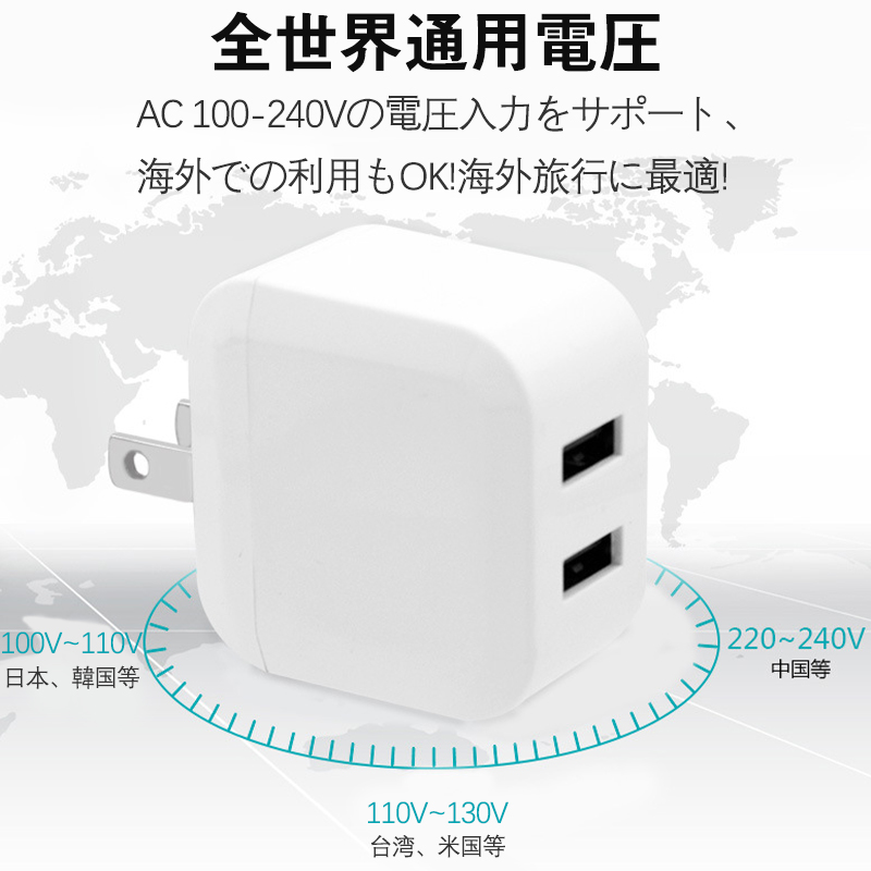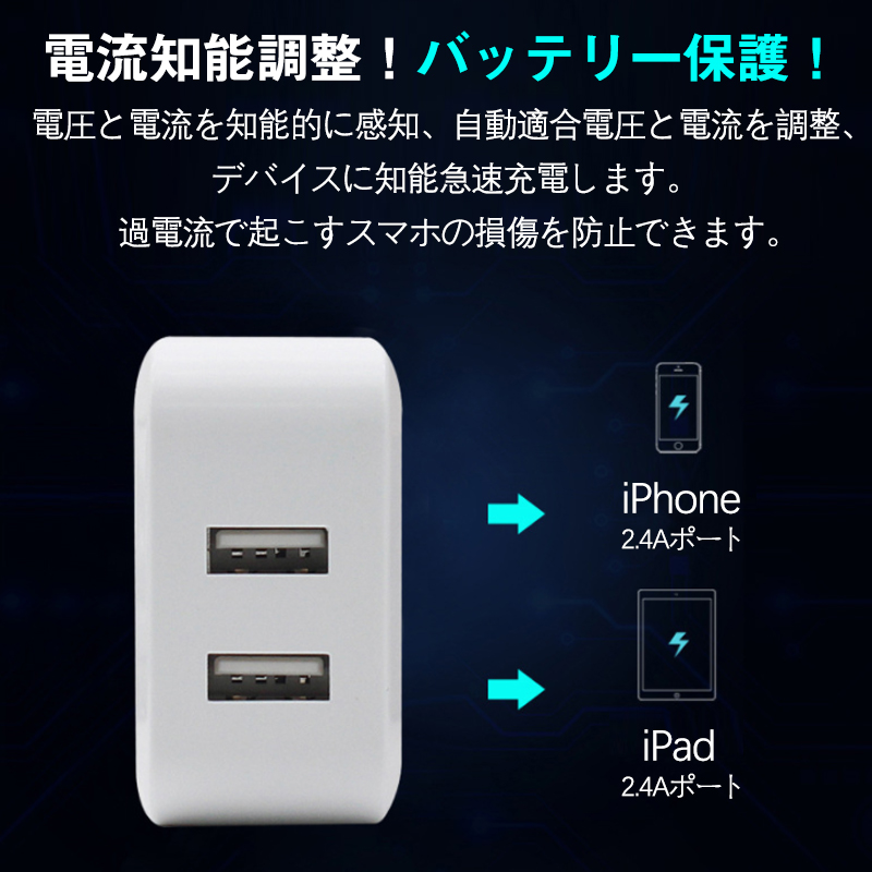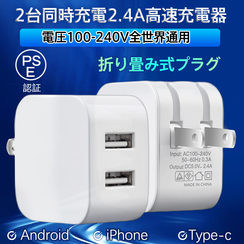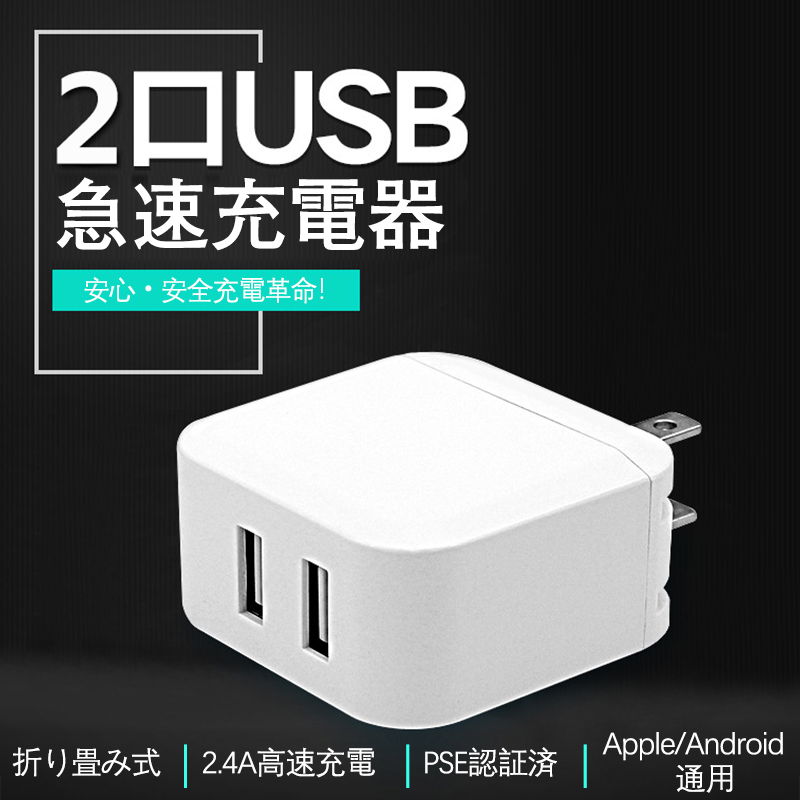 即納 ACアダプター スマホ充電器 iPhone USB 急速充電器 2.4A 充電器 2ポート スマホ USB充電器 チャージャー 高速 急速 AC電源アダプタ 激安 2点で200円OFF!