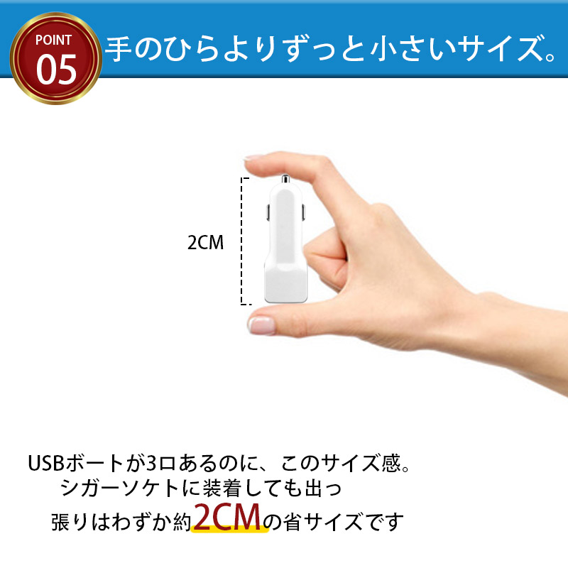 ●iPhone、iPod、Micro-USB、Type-C対応、車のシガーソケットから充電できる車載用充電器です。
