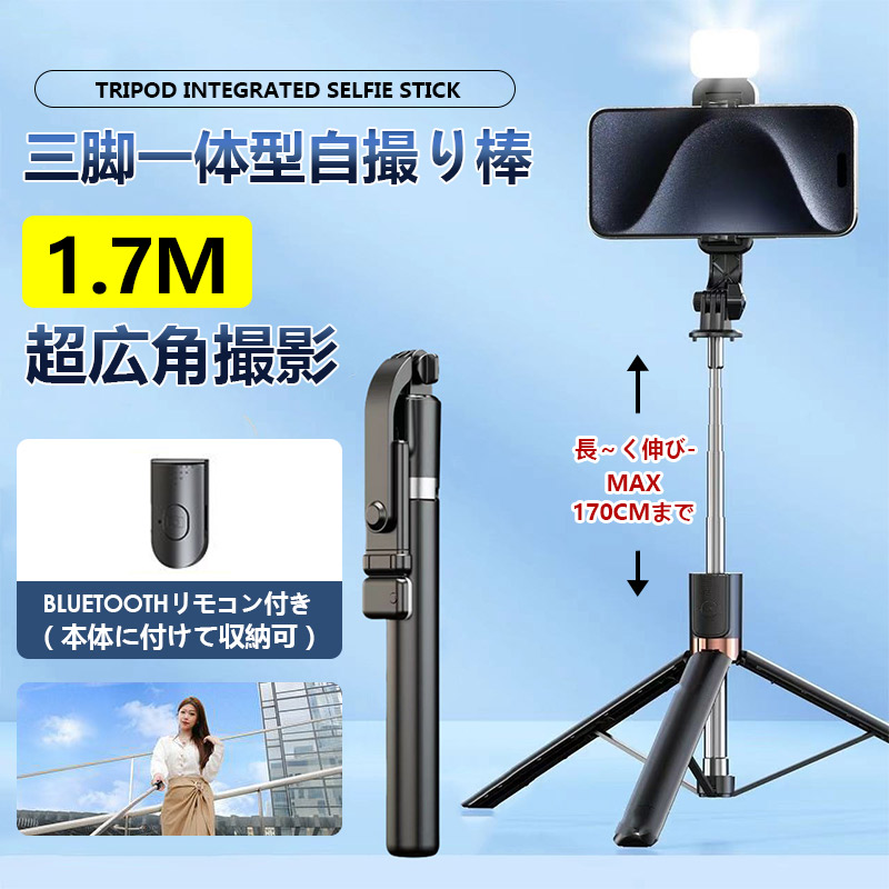 自撮り棒 セルカ棒 三脚 リモコン付 Bluetooth じどり棒スマホ三脚 無線 美顔 自分撮り 自撮り スマホ シャッター付 折り畳み ★超長170cmまで 即納 国内発送!