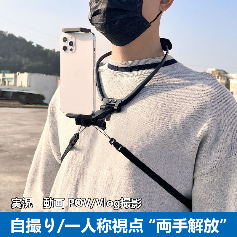 スマホ ネックホルダー マグネット 首掛けスマホホルダー ネックスタンド 実況 動画 POV/Vlog 撮影 自撮り 両手解放 スマホ 360度回転 安定撮影 角度調節