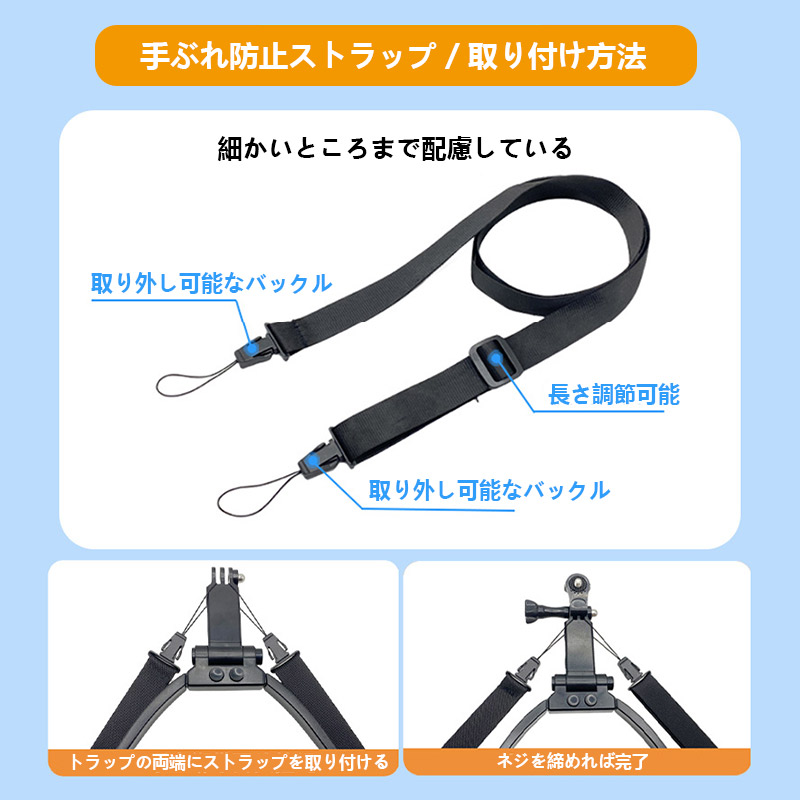 1 x クローズドタイプホルダー+保護パッド、1 x ネジ、1 x 回転ジョイント、1 x スマートフォンクランプ、1 x 取り外し可能な衝撃防止ストラップ