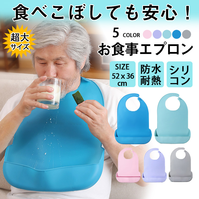 商品名:超大サイズ 介護エプロン 食事用 防水 おしゃれ 食事用エプロン 介護 シリコン ポケット 耐熱 よだれかけ 介護用品