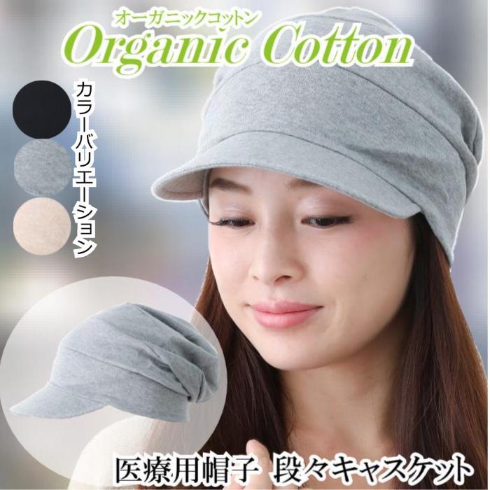 医療用帽子 オーガニックコットン 女性 男性 おしゃれ 抗がん剤 可愛い ケア帽子 段々キャスケット