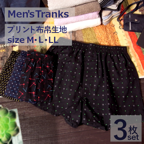 トランクス メンズ 紳士 パンツ M L LL 綿100% 下着 3枚組 柄おまかせ インナー 安い 人気