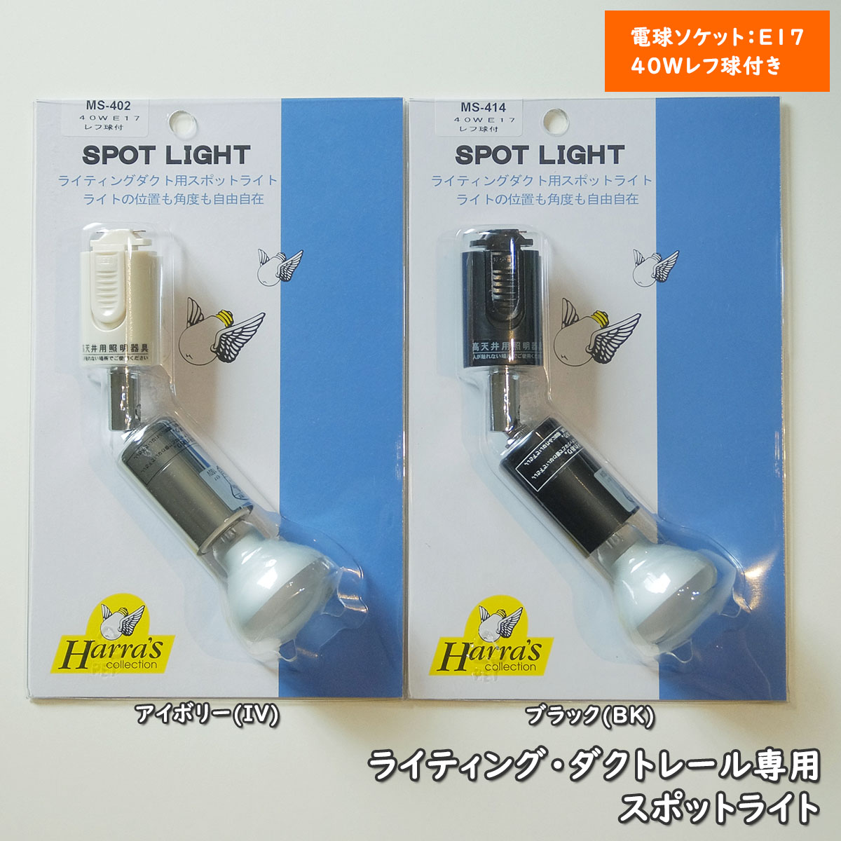 ライティングレール用 ダクトレール用 スポットライト E17 40Wレフ球付き アイボリー ブラック MS-402 MS-414