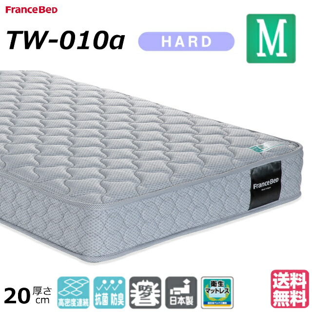 フランスベッド セミダブル マットレス TW-010α ハード 高密度連続スプリング ジャガード生地 防菌防臭 防ダニ加工 ZT-020/ZT-030後継モデル 送料無料