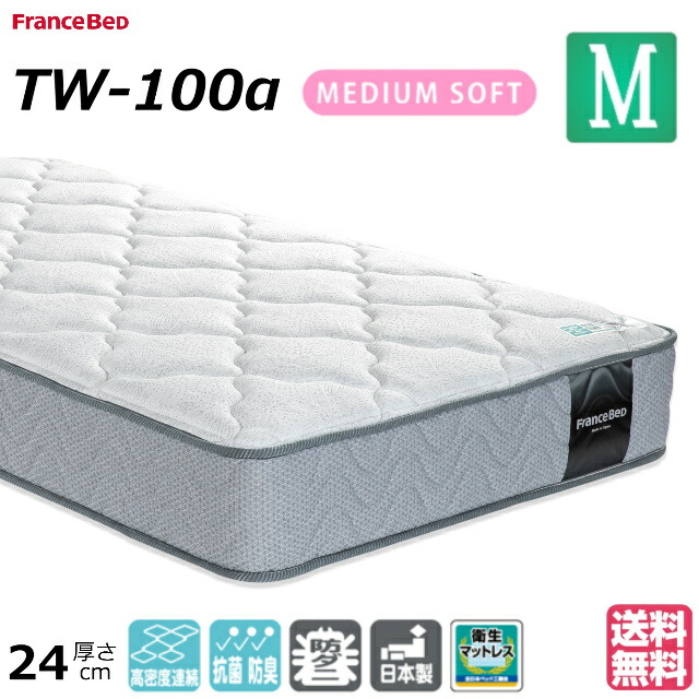 フランスベッド セミダブル マットレス TW-100α ミディアム 高密度連続スプリング ダブルニット生地 防菌防臭 防ダニ加工 送料無料