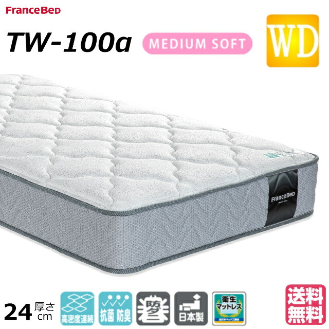 フランスベッド ワイドダブル マットレス TW-100α ミディアム 高密度連続スプリング ダブルニット生地 防菌防臭 防ダニ加工 送料無料