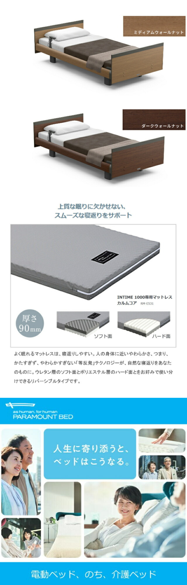 パラマウントベッドは、皆様の寝室に「上質な眠り」をお届けします。パラマウントベッド NEWインタイム1000<1+1モーターの電動ベッドは、こんな方におすすめ>●立ち上がりも、起き上がりも出来てまだまだ元気!