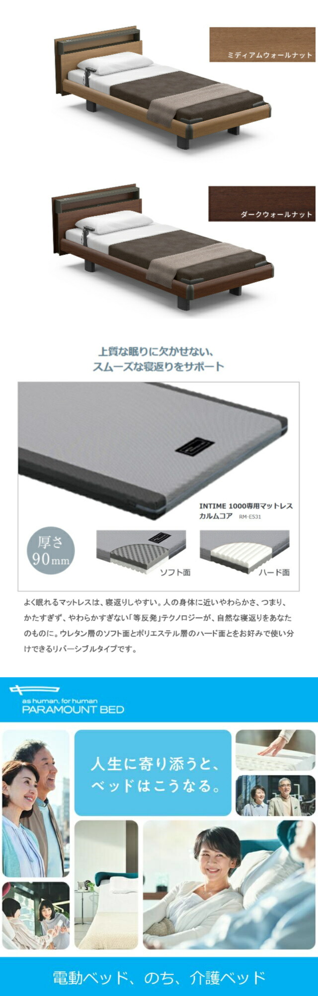 パラマウントベッドは、皆様の寝室に「上質な眠り」をお届けします。パラマウントベッド NEWインタイム1000<1+1モーターの電動ベッドは、こんな方におすすめ>●立ち上がりも、起き上がりも出来てまだまだ元気!