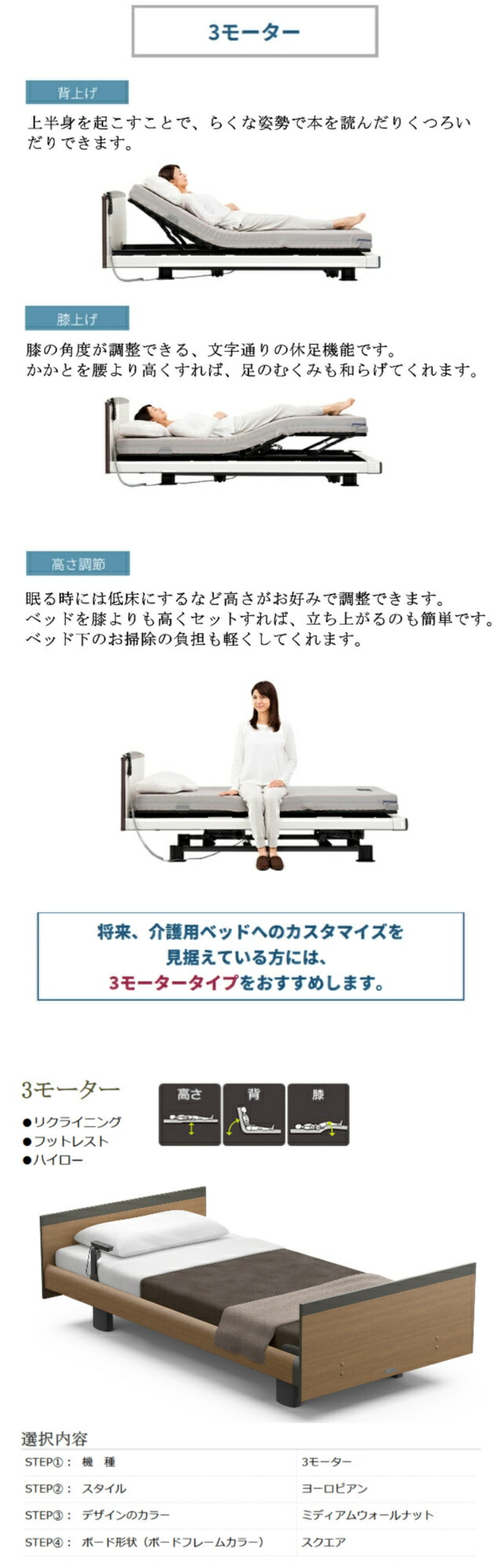 <セミシングルサイズのおすすめポイント>●乗り降りしやすく、介護されやすいサイズ