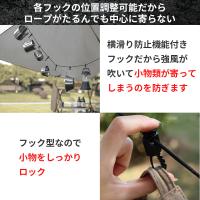 ・各フックの位置調整可能だからロープがたるんでも中心に寄らない