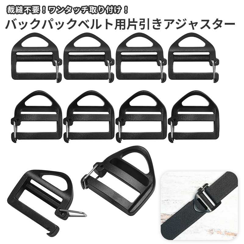 \10個セット/ 片引き アジャスター フリップ式で後付け簡単 リュックカン リュック 紐 留め具 紐 長さ調整 金具 リュック ベルトを固定する