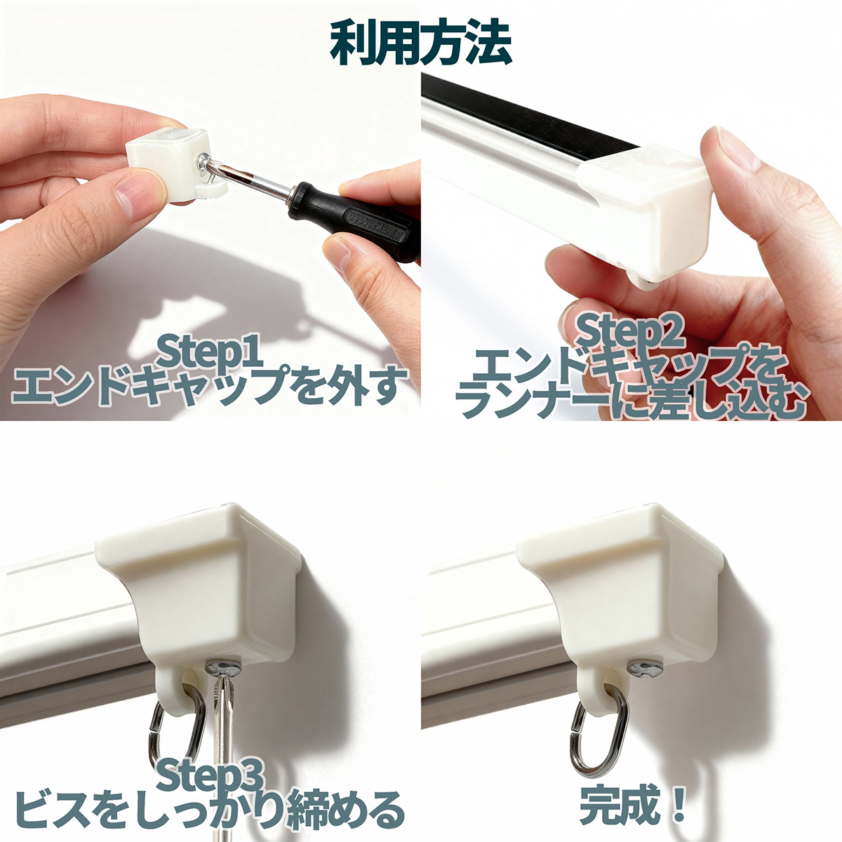 簡単交換!角型カーテンレール用 交換エンドキャップ4個セット。