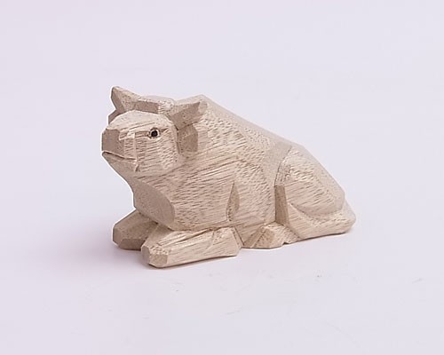 直方体の素材から48面体までの範囲に彫り進め目的の品に形作る手法を使ったもので自然な彫り跡が素朴さの中に力強さを感じさせる一品です。