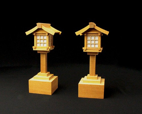 神殿の両脇に配置し、お参りいただくときや、日が暮れ、辺りが暗くなったら点灯し、お休み前に消灯してください。