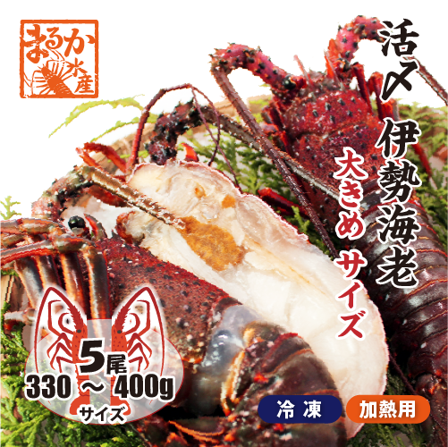 活〆伊勢海老(冷凍加熱用)大きめサイズ 330〜400g [冷凍伊勢海老](入数:5尾★、半割で発送)