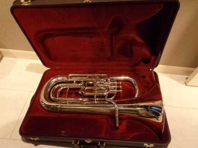 金管楽器の老舗ブランド・ベッソンの太管ユーフォニアム。コンペンセイティング・システムなし、サイドアクションで軽やかな吹き心地と柔らかなブリティッシュサウンドと取り回しが良さが特徴のモデルです。銀メッキ仕上げ。太管・サイドアクション4ピストン・コンペなしの定番モデル!現在は生産完了しておりますが、流通量も多く学生さんや扱いやすいユーフォをお探しの方にオススメのモデルです。楽器の状態 凹み傷ありますが、音に影響があるほどでは無いと思います。画像9.10.11.12で確認してください。メッキの状態もよく、綺麗な状態です。ピストンバネ、フェルト、コルク交換済み、全体調整しての発送になります。マウスピースはバック6 1/2新品が付属します。