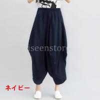 綿麻 リネンパンツ 無地 ゆったり 袴パンツ サルエルパンツ レディース 9分丈 ワイド ウエストゴム アラジンパンツ ウエストゴム 春 夏ボトムス タイパンツ