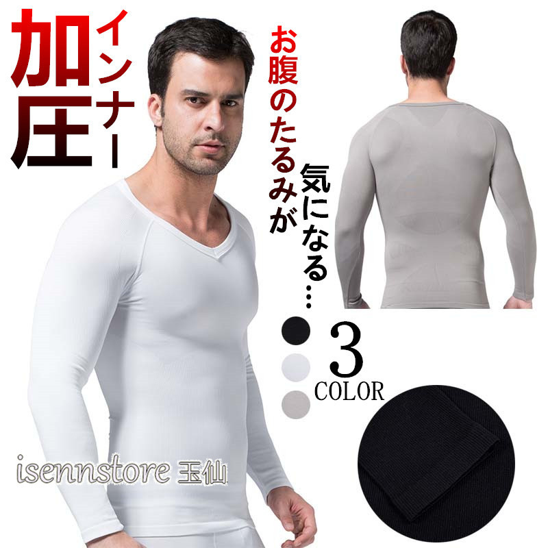 メンズ コンプレッションウェア トップス 加圧シャツ インナー 長袖 Vネック 下着 アンダーウェア 着圧 シェイプアップ 補正下着 猫背 姿勢矯正 お腹 引き締め
